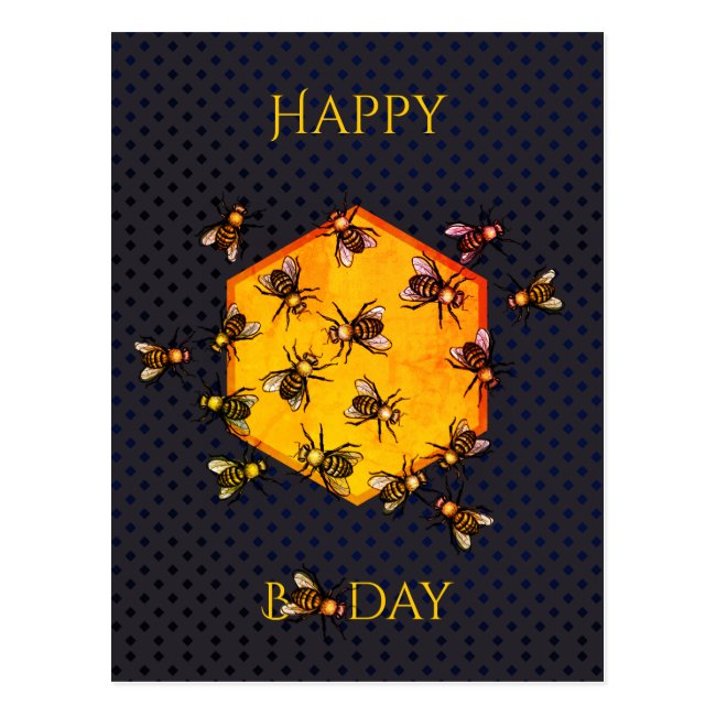 Happy B day Honey bees orange yellow fun birthday Postcard