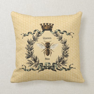 Queen Bee with Vintage Crown and Wreath Throw Pillow