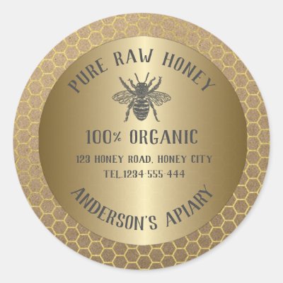 Vintage rustic Kraft look bee honey comb honey jar Classic Round Sticker