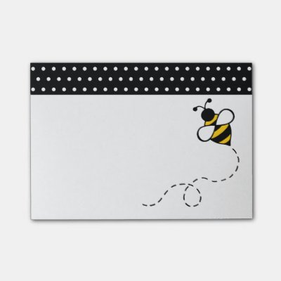 A bright yellow bee decorates these black and white polka dot Post It Notes. These cute post it notes are great for the office school teachers the kitchen etc...The design is from original art.