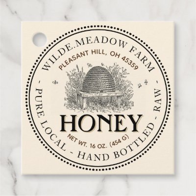 Vintage Skep Local Honey Jar Necktag Favor Tags