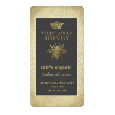 Vintage rustic gold crown queen bee honey jar label